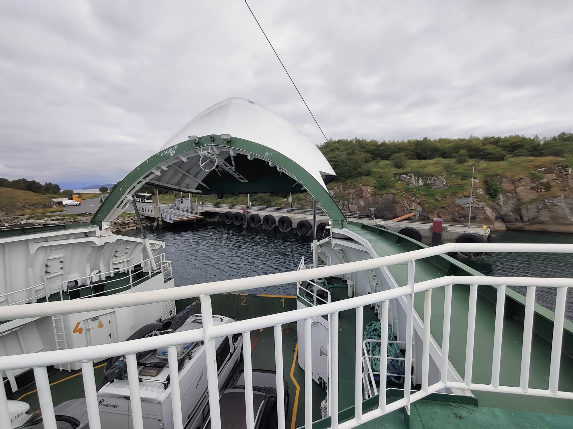 Heute nachmittag wollen wir nach auf die Insel Dønna übersetzen, dafür nehmen wir die Fähre von Søvik. Fahrplanmäßig ist zuerst ein Abstecher nach Austbø dran, so dass wir sogar noch zu einer kleinen Inselrundfahrt kommen.
