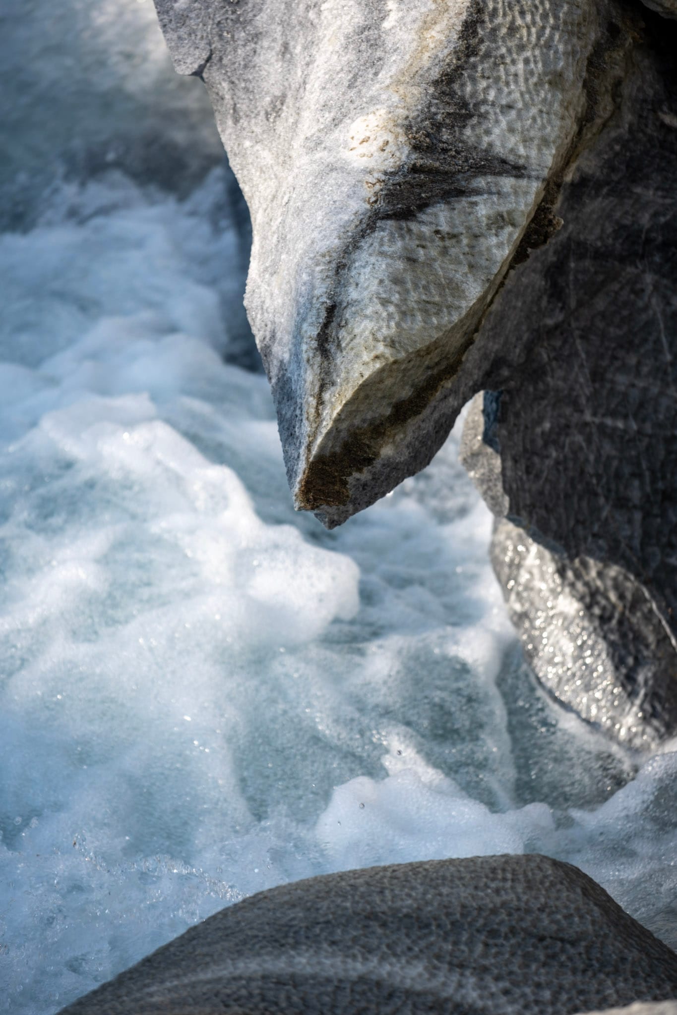 Wir bleiben eine Weile dort am Fluss, genießen die Formen und Farben von Gestein und tobendem Gletscherwasser und gehen erst zurück, als eine größere Gruppe eintrifft.