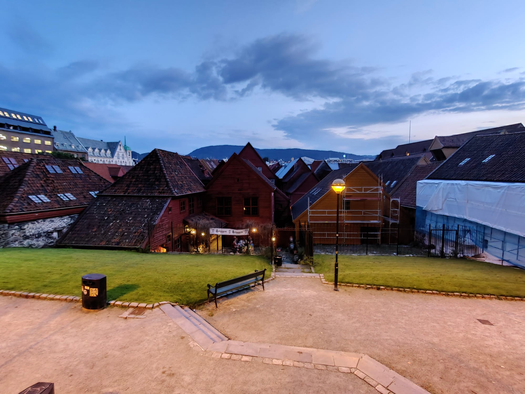 Abends in Bergen machen wir noch eine ausgedehnte Hafenrunde, abgeschlossen mit Elchburger und Softeis, und fallen dann in die Betten. Das Hotel hat außerdem toll duftendes Duschgel von Fitjar Islands, von der wir etwas mitnehmen und die wir in den Jahren darauf noch einige Male nachbestellen werden.