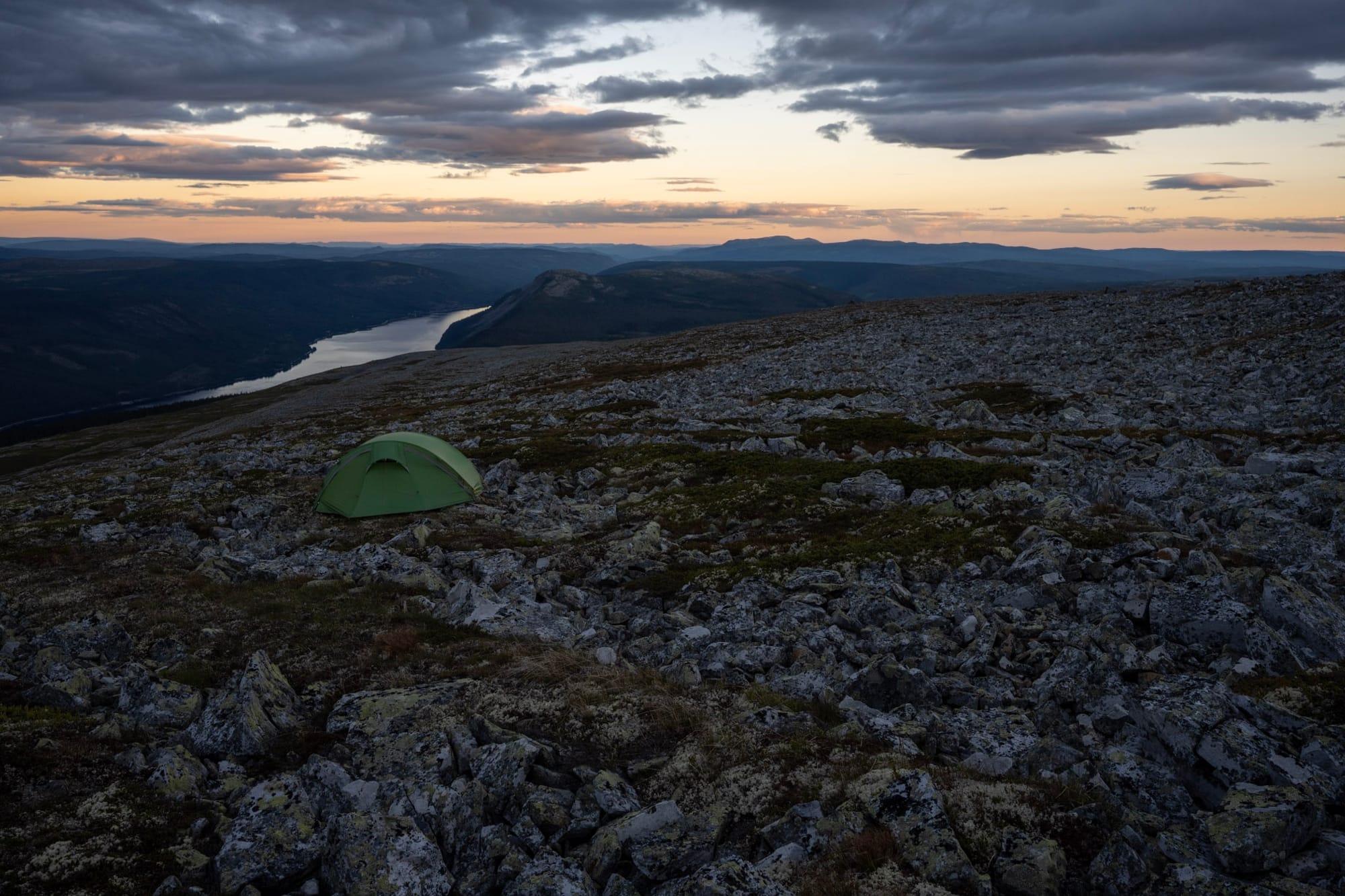 Je höher wir kommen, desto mehr merken wir den kalten Westwind, der uns schon den ganzen Tag über mehr oder weniger begleitet hat und der mir binnen kürzester Zeit die Wärme aus den Gliedern zieht, während Heiko sich dazu inspiriert sieht, auf dem Geröllfeld bei großartiger Aussicht einen Zeltplatz zu suchen - und ihn tatsächlich findet!