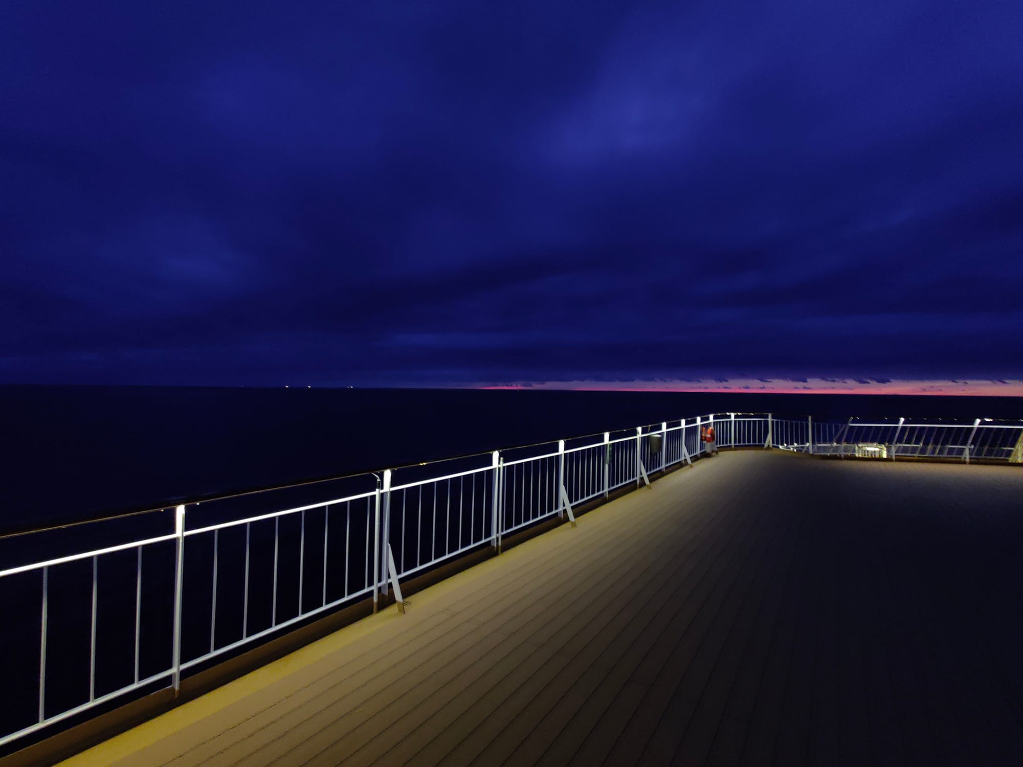 Auf dem Weg zum Fährhafen kurven wir noch quer durch die Osloer Innenstadt und stehen letztlich doch etwas unvermittelt vor dem Terminal, wo wir nach einiger Wartezeit auf die Fähre fahren und unsere Kabine beziehen können; zu einem, wie sich später herausstellen wird, konkurrenzlos günstigen Preis haben wir uns eine Außenkabine mit Doppelbett und großem Fenster geleistet. Wir gehen erstmal duschen und lungern danach eine ganze Weile lesend auf dem Bett herum, während draußen der Oslofjord vorbeigezogen wird, und verabschieden uns so ein wenig wehmütig, aber auch sehr erfüllt, von Norwegen.