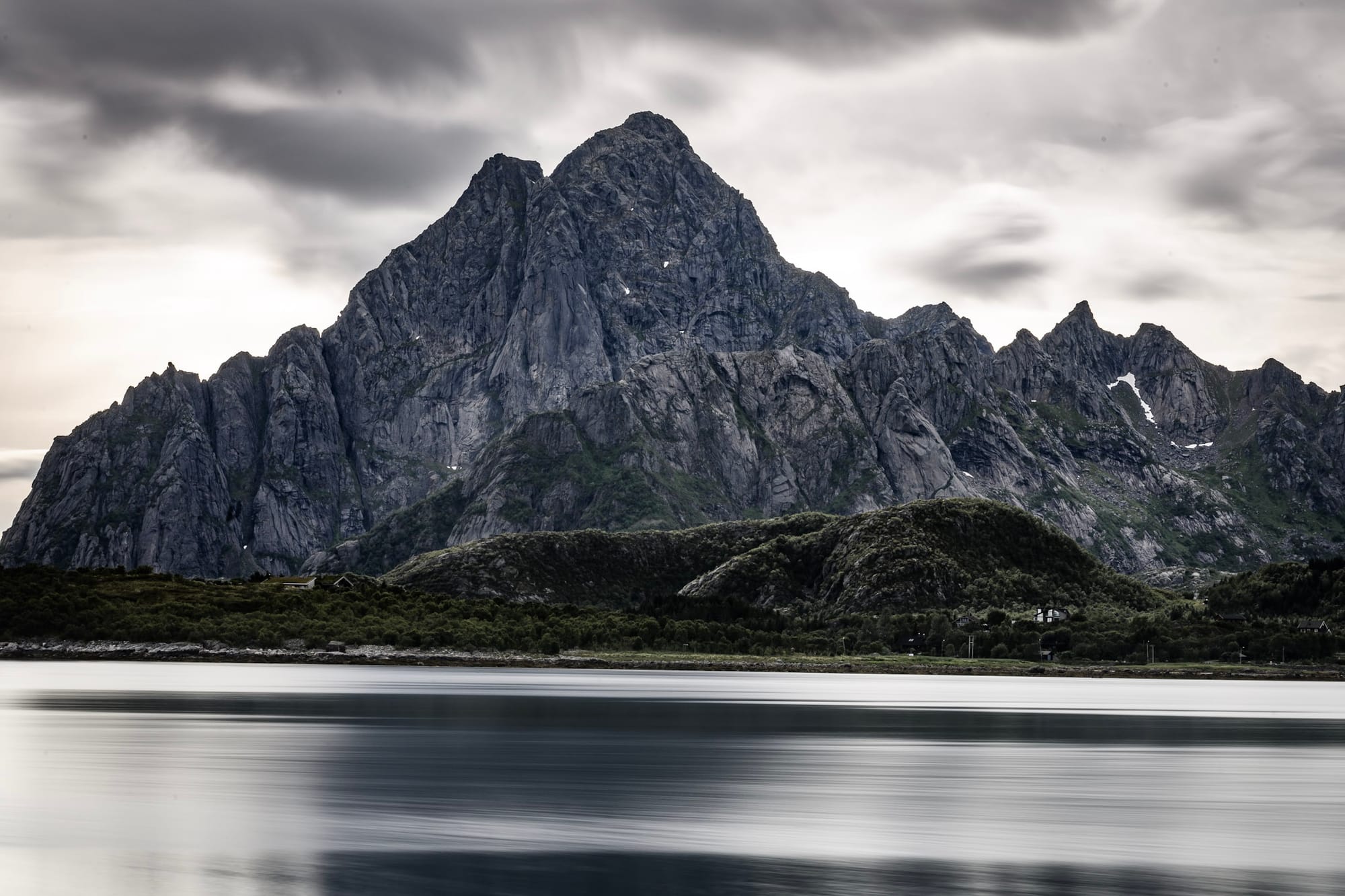 Dann geht es über die Brücke, an der Eismeerkathedrale vorbei zurück auf die E6. Das Wetter ist trübe und grau, auf den Lofoten allerdings soll es schön werden und so schlagen wir uns dorthin durch. Die Fahrt ist ereignislos, wenn auch etwas zäh durch die Wohnmobile, die an jeder bescheidenen Anhöhe verhungern und auch ansonsten nicht durch zügige Fahrweise auffallen. Als wir die Bucht von Narvik passieren, liest Heiko reichlich Wissenswertes über die Schlacht von Narvik 1940 vor, wovon ich jetzt, etwa ein Jahr später, bereits wieder alles vergessen habe.