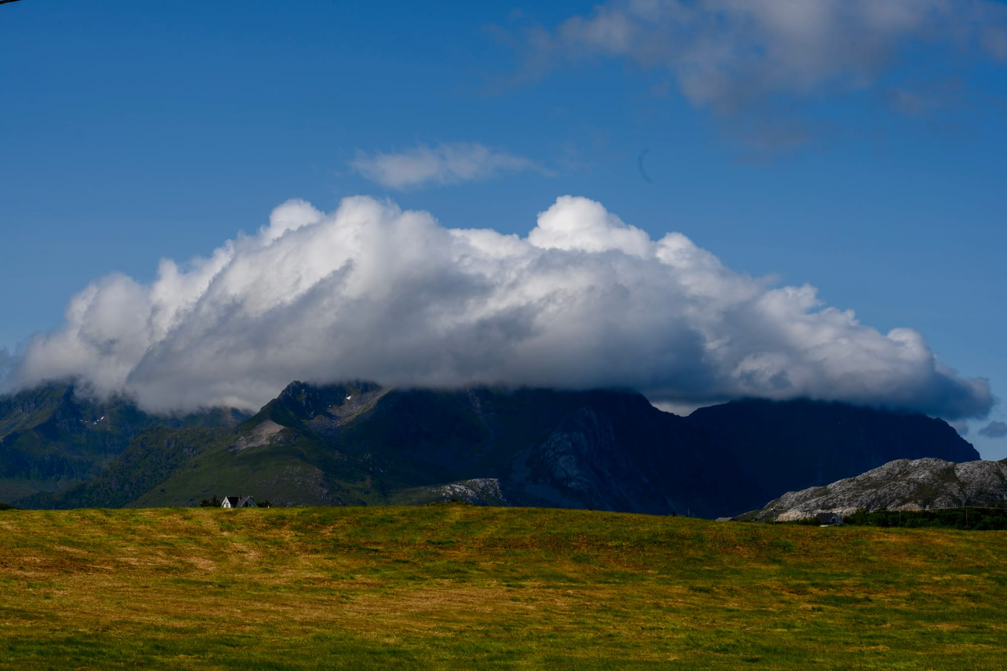 Bei der Werkstatt ist man zuversichtlich, das Problem ist nicht unbekannt und das passende Bauteil haben sie auch da. Die Reparatur soll an die 700,- Euro kosten, das ist gerade noch unterhalb der Schmerzgrenze. Heute nachmittag soll das Auto wieder fahrtüchtig sein - das klingt doch prima, wir packen also einen Tagesrucksack und vertreiben uns den Tag in Leknes. Das Wetter ist uns wieder hold und die Sonne strahlt vom blauen Himmel. Vor einem Kaffeehaus setzen wir uns mit einem sehr guten Heißgetränk in die Sonne und beobachten das Kleinstadtleben, danach spazieren wir südwärts zu einem kleinen Hafenbecken und durch ein Wohngebiet zurück. Zuletzt erkunden wir noch das Heidegebiet in der Nähe des Flughafens, der praktisch direkt hinter der Autowerkstatt beginnt. Der Sonnenhut bildet heute wieder das wichtigste Norwegenaccessoire.