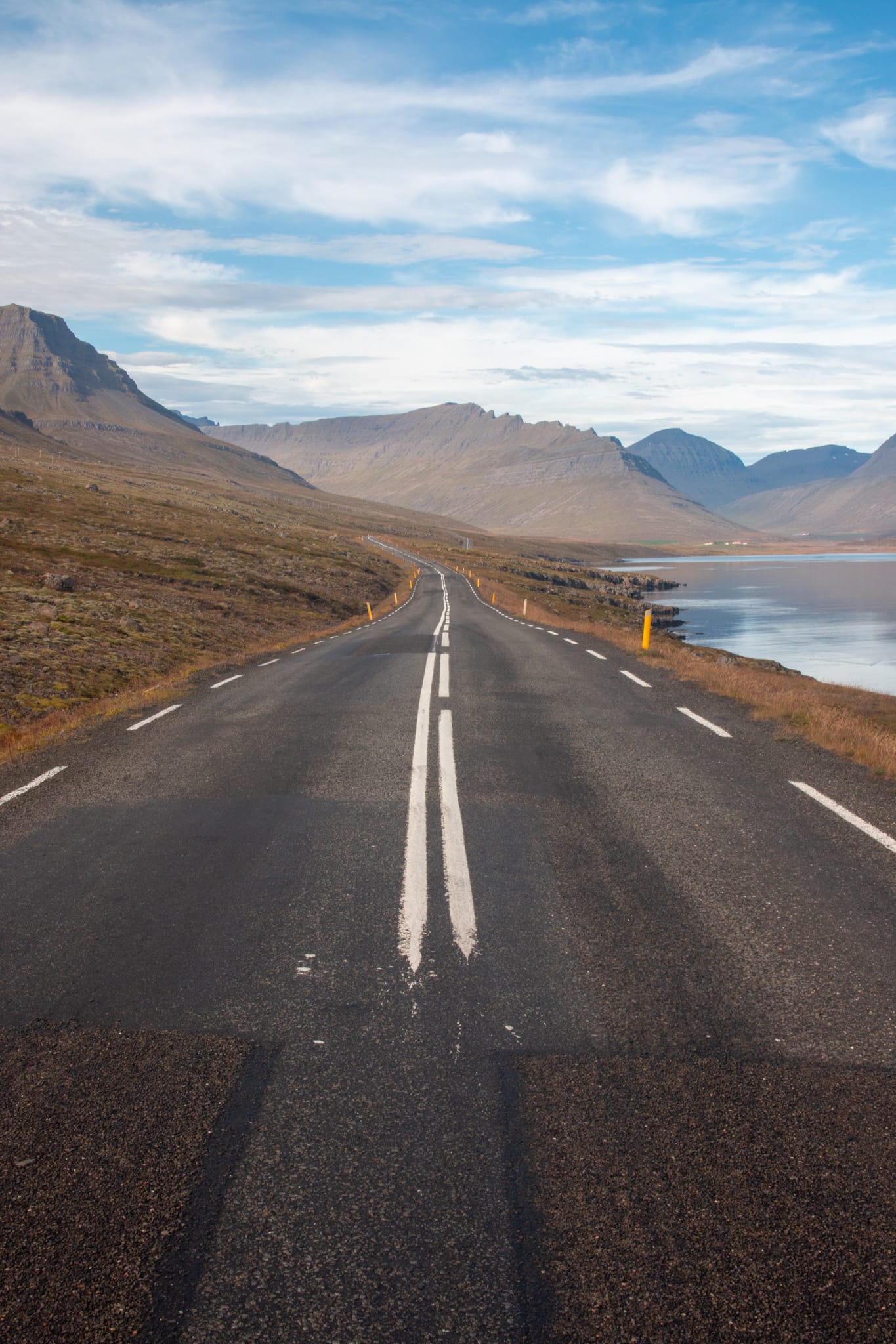 In strahlendem Sonnenschein fahren wir am Meer entlang zurück, biegen hinter Reydarfjördur auf die 955 und setzen uns bei Vattarnes ein Weilchen an die Klippen. Delphine sehen wir nicht, aber das glitzernde Meer im Sonnenschein und der Wellengang, der sich an den Klippen bricht, ist aussichtsmäßig auch nicht gerade wenig.