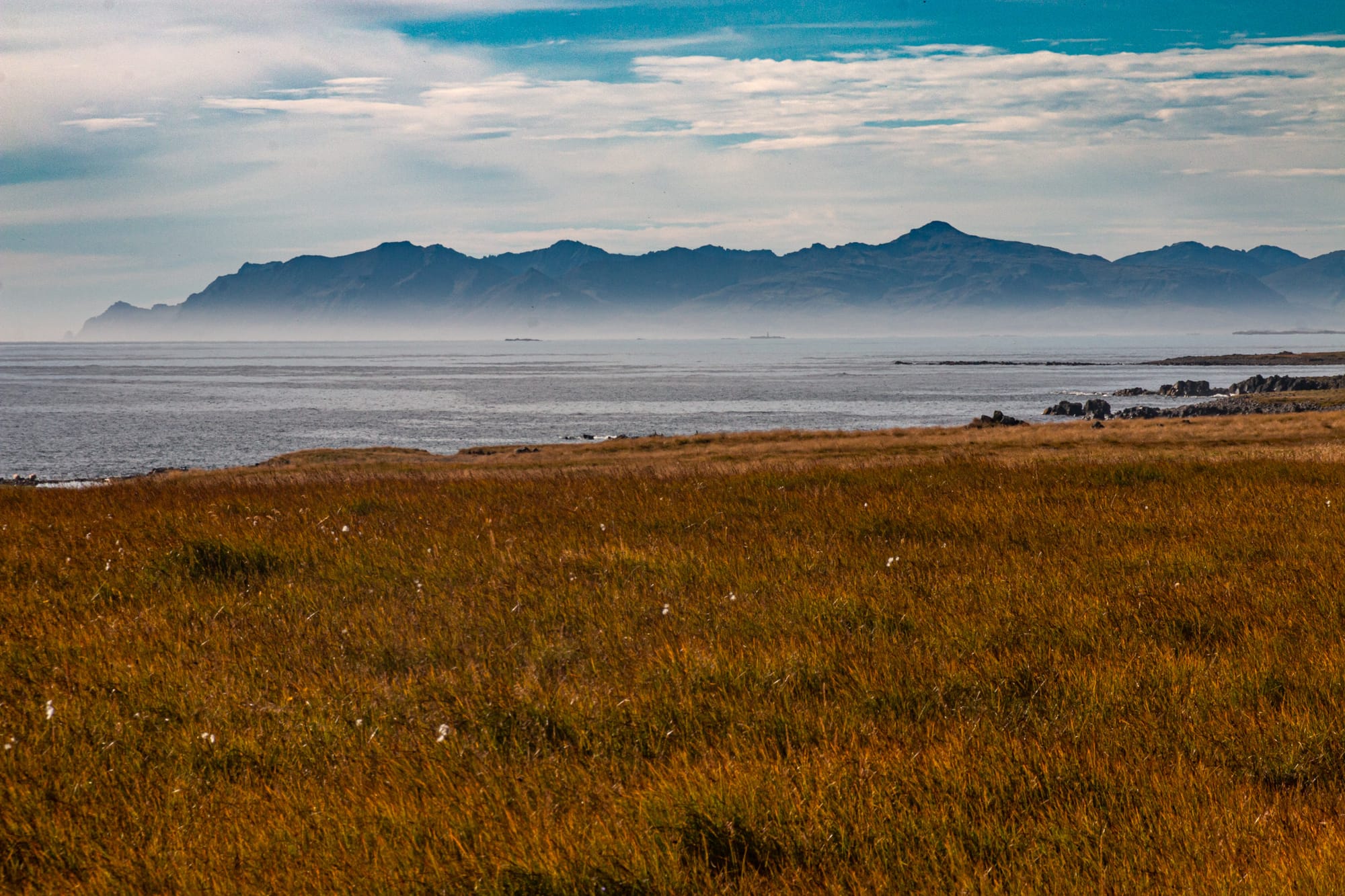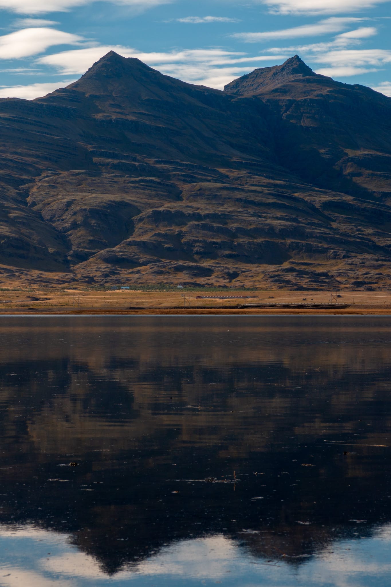 Hinter dem nächsten Fjord ist es mit der seligen Ruhe auch erstmal wieder vorbei, was H. kurzzeitig die Laune etwas verhagelt: Hier gibt es, neben Einbahnstraßen in einzelne Täler, nur noch die Ringstraße, Wandermöglichkeiten sind dünn gesät, zugleich beginnt hier Südisland, die beliebteste und meistfrequentierte Region für Touristen. Zugegebenermaßen ist die Landschaft spektakulär: das schimmernde blaue Meer, grün-gelbe Marschflächen, Fjorde, schroffe schwarze Berge, Sandflächen, Wasserfälle. Der Süden zeigt sich von seiner strahlendsten Seite, wir fahren und fotografieren - allein, weil uns wenig anderes einfällt.