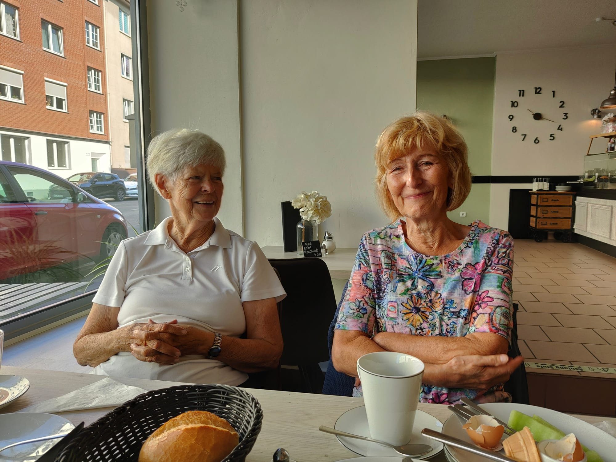 Der Tag beginnt mit einem Frühstück im Cafe. Bärbel ist seit zwei Tagen in Essen, Rosa haben wir am Vorabend vom Flughafen abgeholt. Beide haben ihre Koffer für den Flug umgepackt, denn dieses Mal reisen wir nur mit Handgepäck.