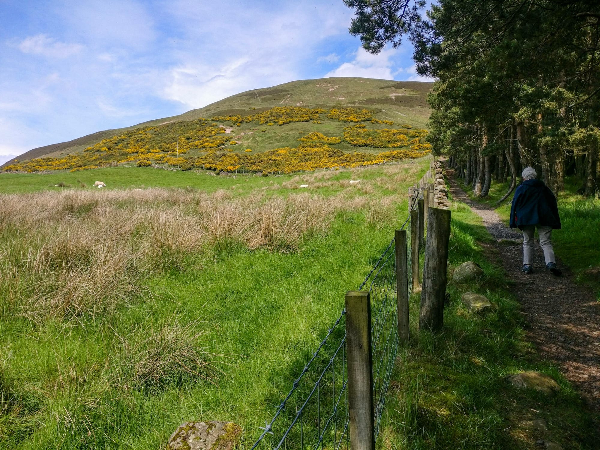 Der Wetterbericht für Edinburgh sagte ergiebigen Regen voraus und dabei bleibt es auch. Als ich in schneller Folge sowohl meinen Koffer vom Band als auch ein paar Pfund Sterling aus dem Automaten geholt habe und im Airlink-Bus richtung Innenstadt sitze, gießt es derartig, dass ich links und rechts kaum etwas erkennen kann; was nicht von Regen und Nebel verdeckt wird, verschleiert die dicht beschlagene Scheibe. Google Maps hat empfohlen, Wester Coates auszusteigen und so stapfe ich mit Schirm und Köfferchen, die immerhin farblich zusammenpassen, den Hügel hinauf. In kleinen Gärtchen sitzen hübsche Sandsteinhäuser und abenteuerlich wird die Strecke erst, als sie auf dem Weg zum Leith steil einen bewaldeten Hügel hinunterführt. Jogger und Hundespazierenführer begegnen mir, riesige Pfützen stehen auf dem Weg und ich komme mir ganz schön dumm vor, muss aber auch sehr lachen. Eine Station später raus und dann der Straße entlang wäre bestimmt einfacher gewesen, aber auch so komme ich kurze Zeit später gegen sechs Uhr einigermaßen trockenen Fußes im Hotel Britannia an - hätte ich das gewusst, hätte ich doch direkt die Wanderschuhe angezogen!