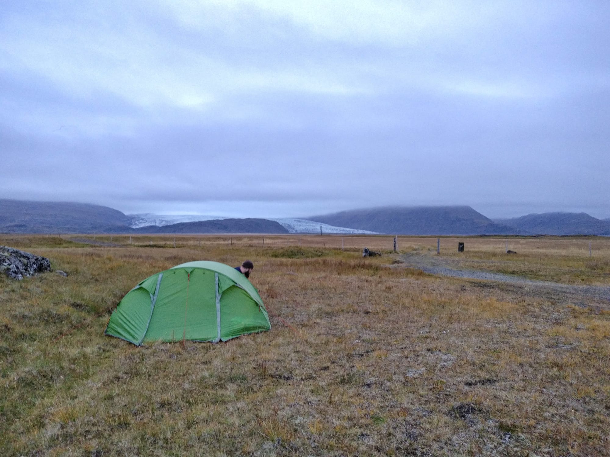 Nach ein bisschen Quatschen, in die Sonne blinzeln und Entspannen im heißen Wasser ist es auch schon Nachmittag, so dass wir nach einem Besuch am benachbarten Svinafellsjökull, der jetzt auch nicht so viel anders aussieht, auf einer der nahen Wiesen Nachtquartier aufschlagen. Leider soll es mit dem guten Wetter morgen vorbei sein.
