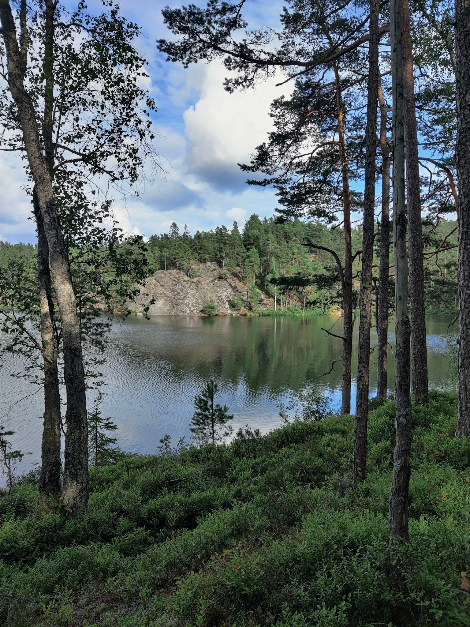Zwischen den großen Seen wird die Strecke etwas abwechslungsreicher und wir sehen eine ganze Weile den Vätternsee rechts liegen. Dann sind wir auch schon in der Nähe des geplanten Tagesziels, des Tiveden Nationalparks. Ein Urwaldgebiet, in dem ich schon vor unserer allerersten Schwedenreise 2016 einen Stern auf der Karte gesetzt hatte; nun, 6 Jahre später, besuchen wir es endlich.