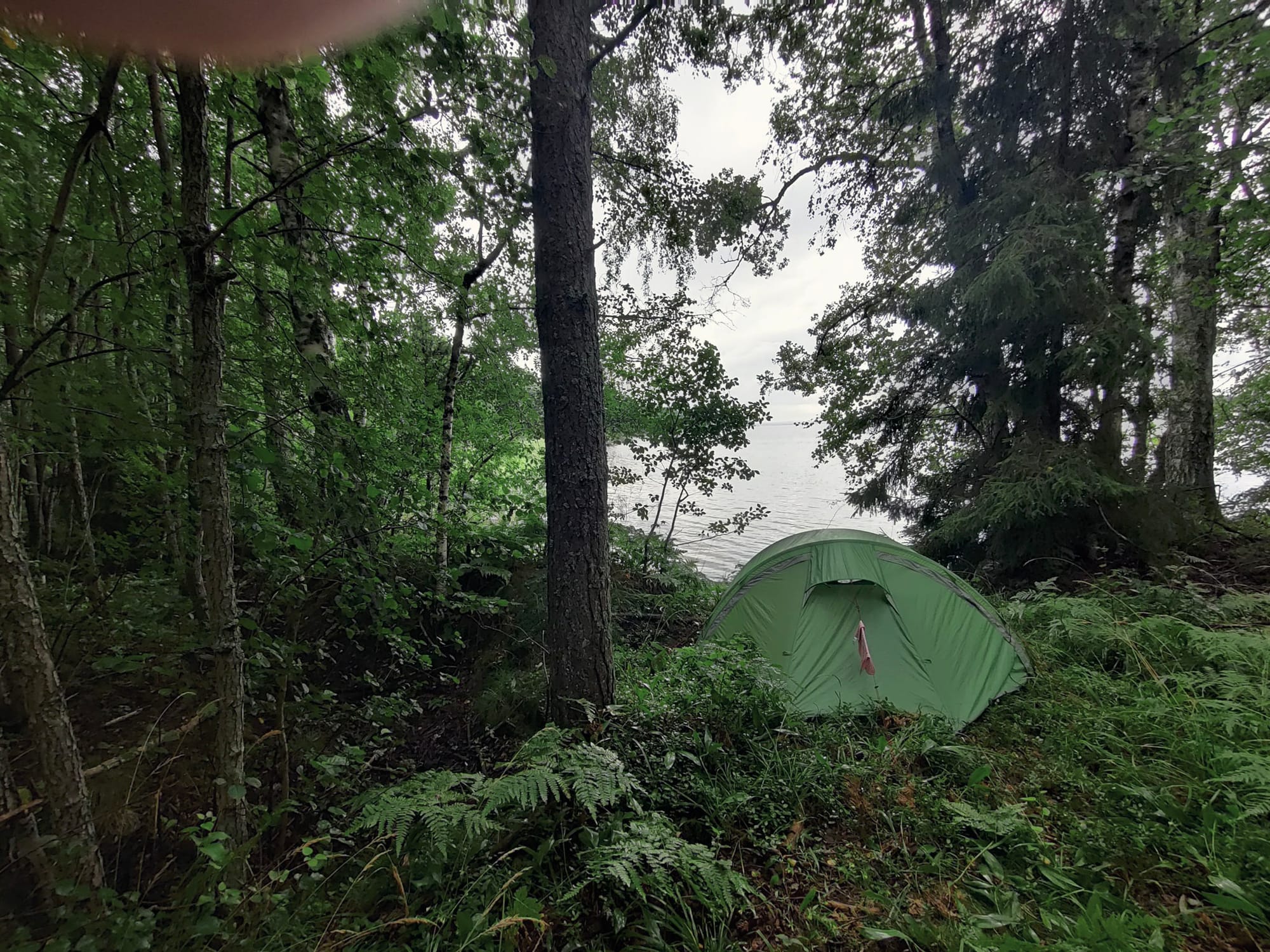 Nach einiger Sucherei finden wir am Ufer des Skagernsees trotzdem einen schönen Platz, auch wenn wir eigentlich zu dicht an einer Hütte stehen - da dort aber gerade niemand ist, geht das, aber so richtig wohl fühle ich mich trotzdem nicht.
